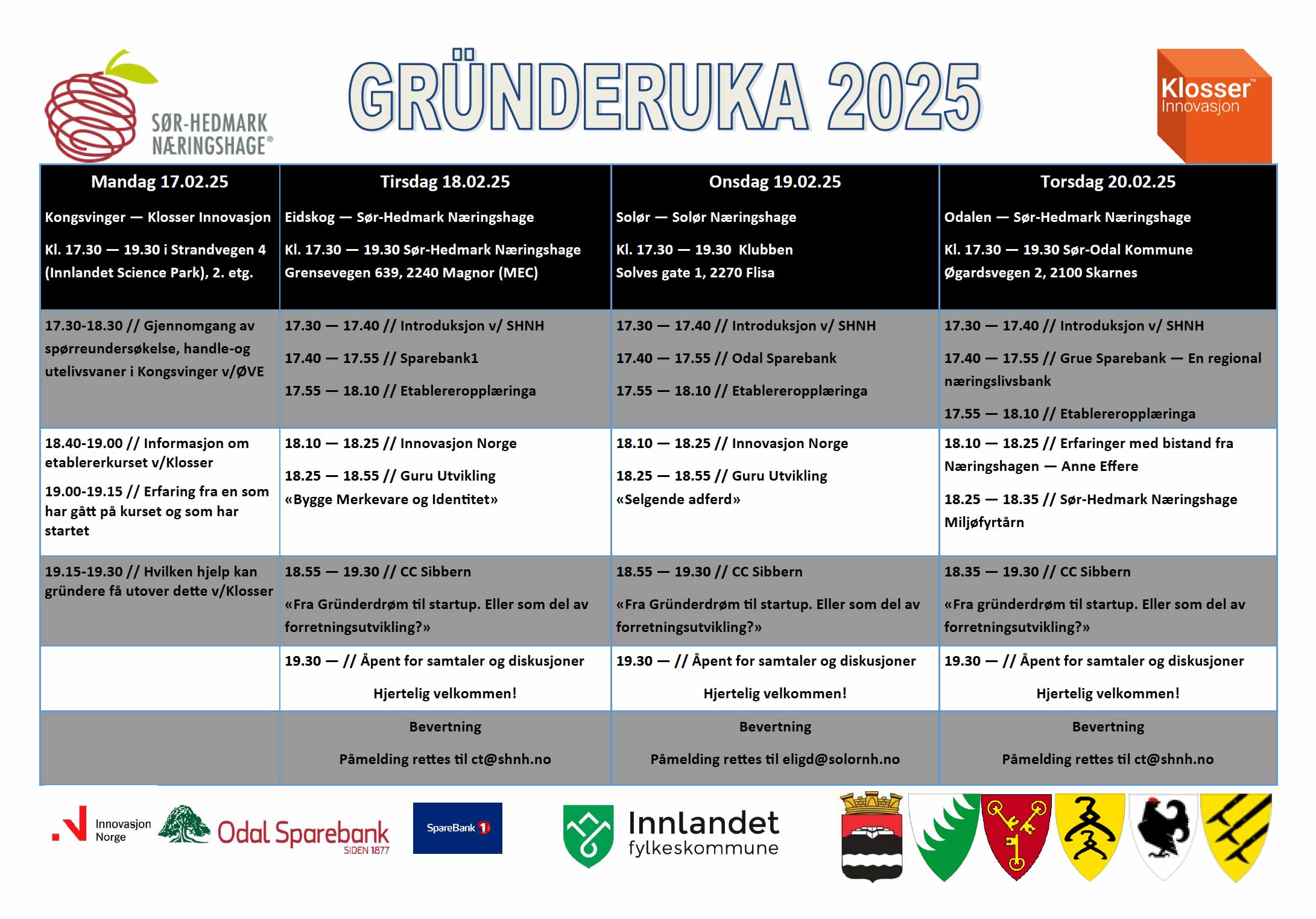Sør-Hedmark Næringshage og Klosser har en Günderuke fra mandag 17/2-2025 til 20/02-2025 på Kongsvinger, Magnor, Skarnes og Flisa.