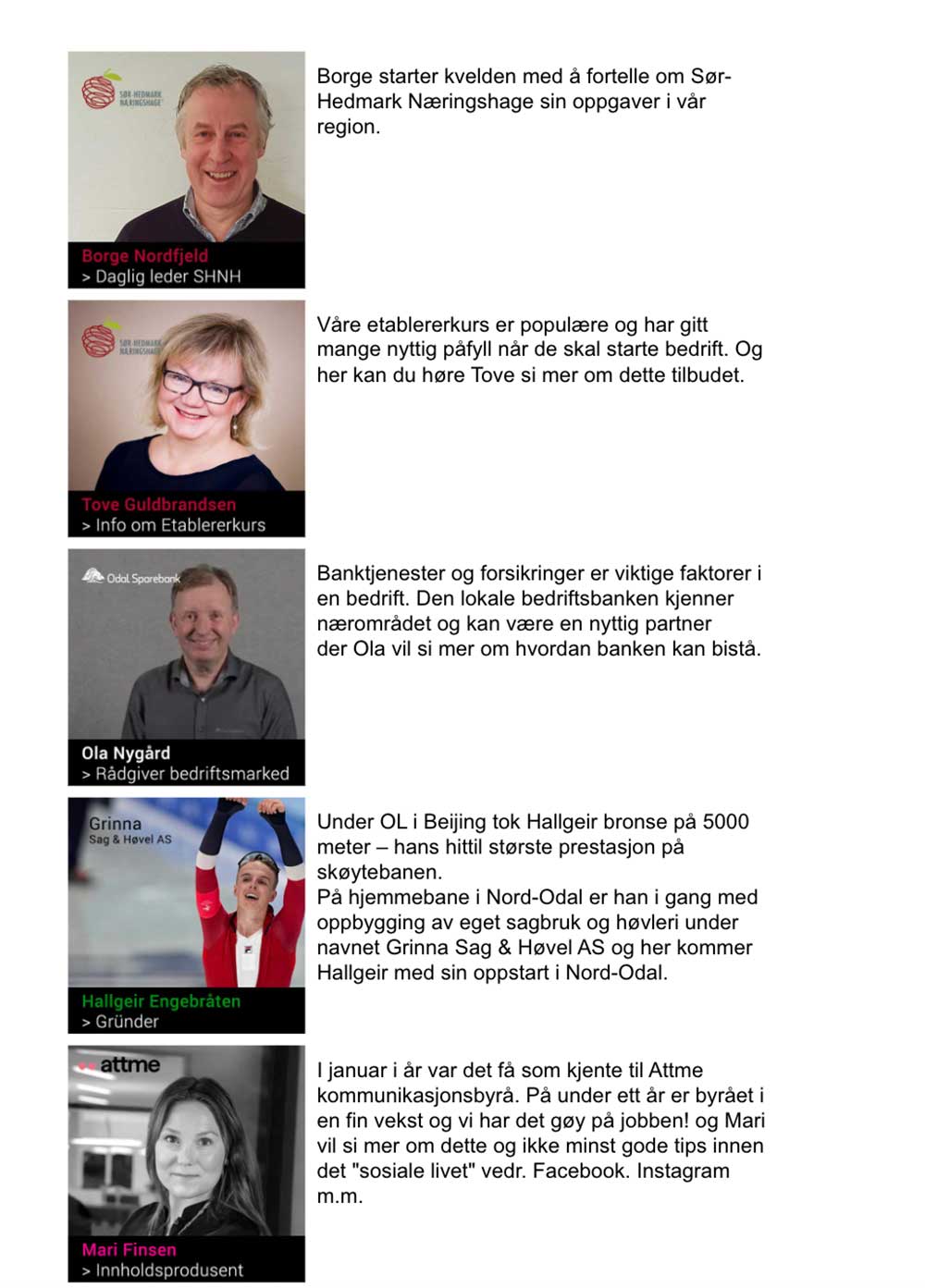 Sør-Hedmark Næringshage v/ Borge Nordfjeld innleder med om våre oppgaver i vår region.